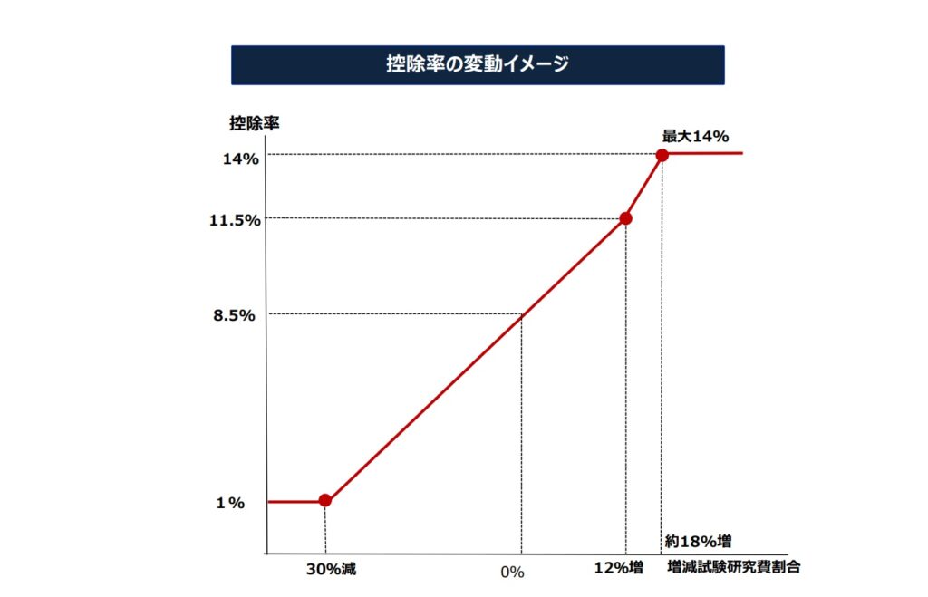研究開発税制の一般型は、研究開発投資額の増減に応じて、控除率等が増減する仕組みです。