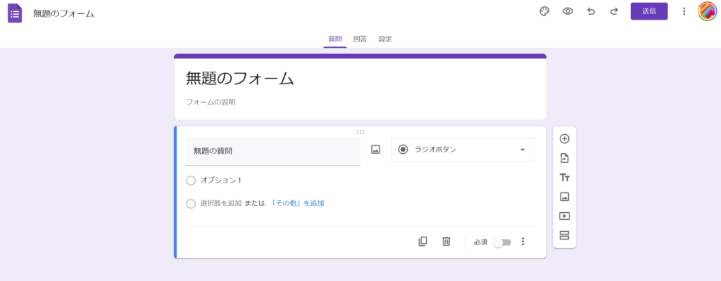 「空白のフォーム」をクリックすると下記の画面になります。