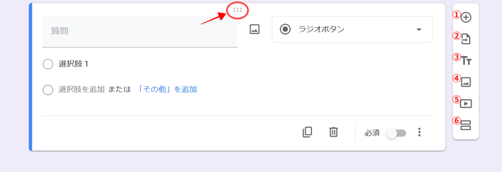 複数の質問を入力後に順番を入れ替えるときは、矢印の部分をドラッグして上下に移動が可能です。