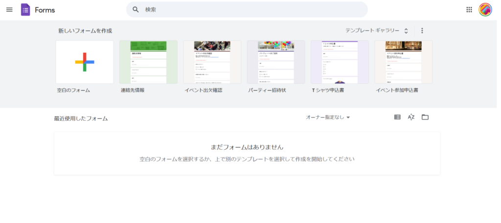 新しいフォームを作成するため「空白のフォーム」またはいくつか提案されているテンプレートの中から近しいものを選択。