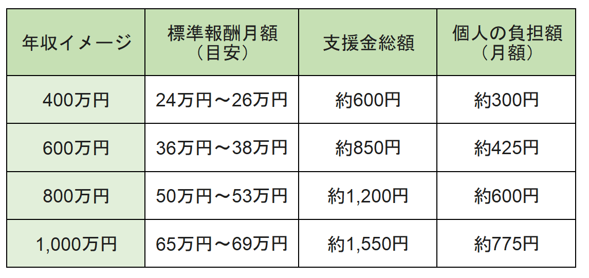 A. 年収によりますが、初年度(2026年度)は月額300円~800円程度(個人負担分)の見込み