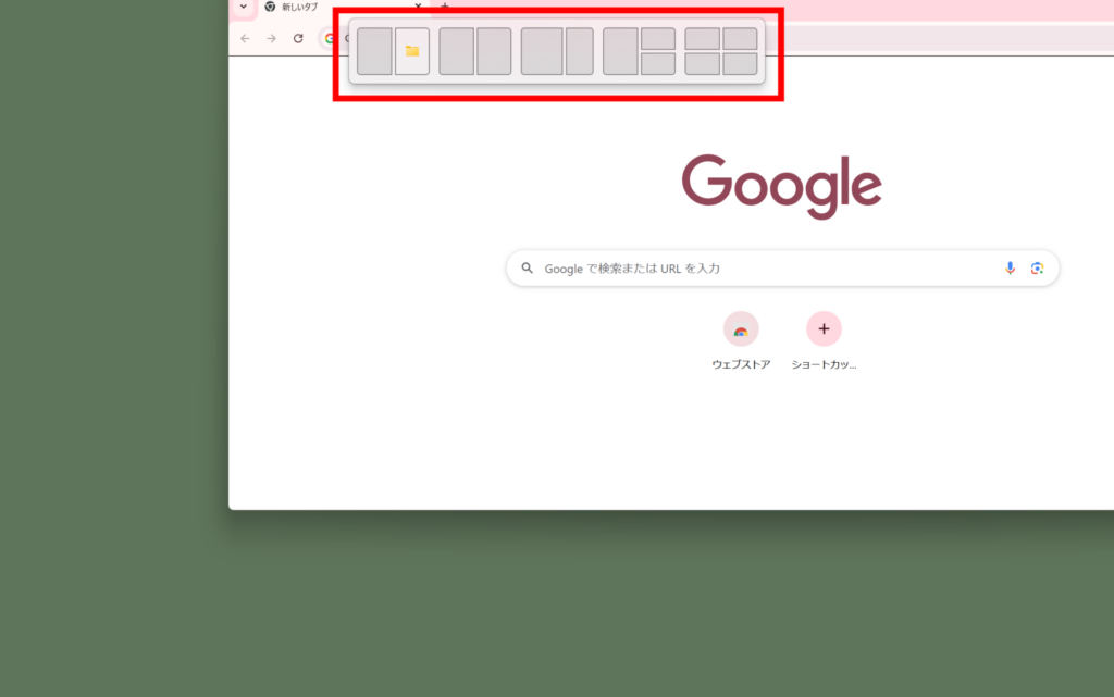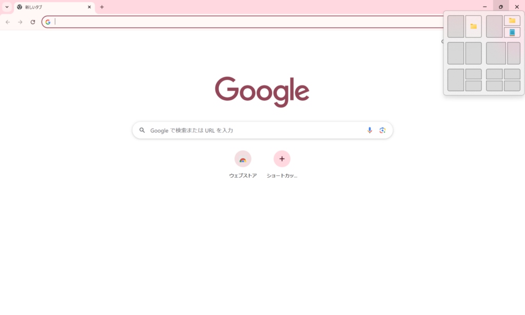 任意のウィンドウ右上の「最大化ボタン(□)」にマウスカーソルを合わせます。すると分割レイアウトの選択肢(2分割、3分割、4分割など)が表示されるので、好きな分割パターンをクリックすると、自動で配置されます。
