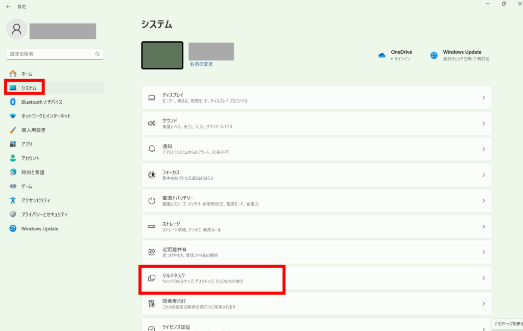 まずは「設定」から、「システム」→「マルチタスク」を選択。その後表示される「ウィンドウのスナップ」をオンにします。