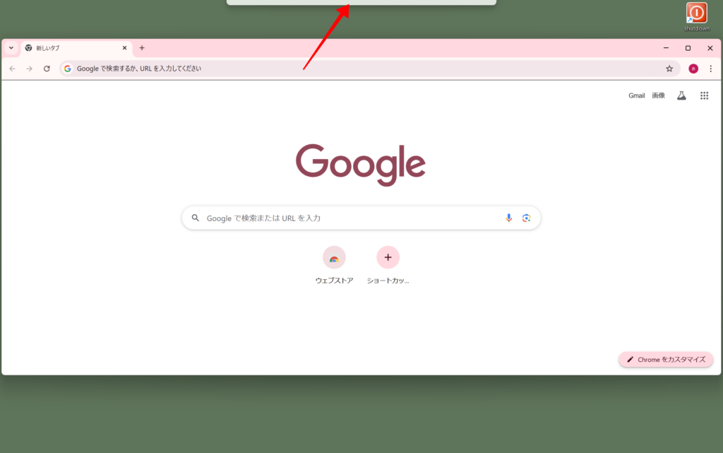 ここまで設定できたら、分割させたいアプリを起動し画面をマウスでドラッグすると、ディスプレイの上からひょっこり白いものが出てきます。