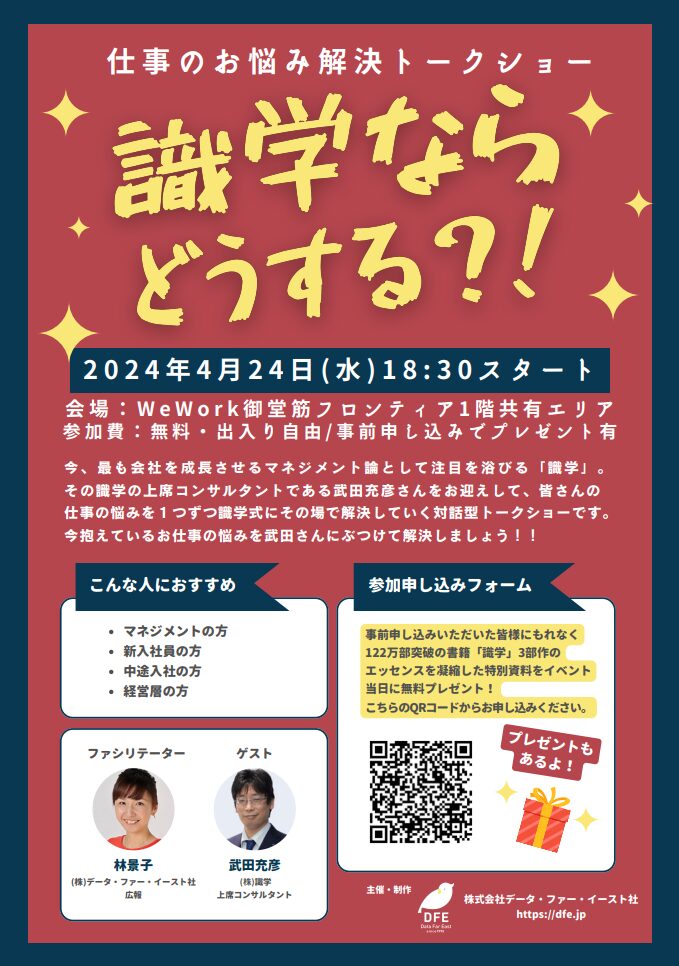 識学の上席コンサルタントである武田充彦さんをお迎えし、対話型トークショーを開催することが決定いたしました。
